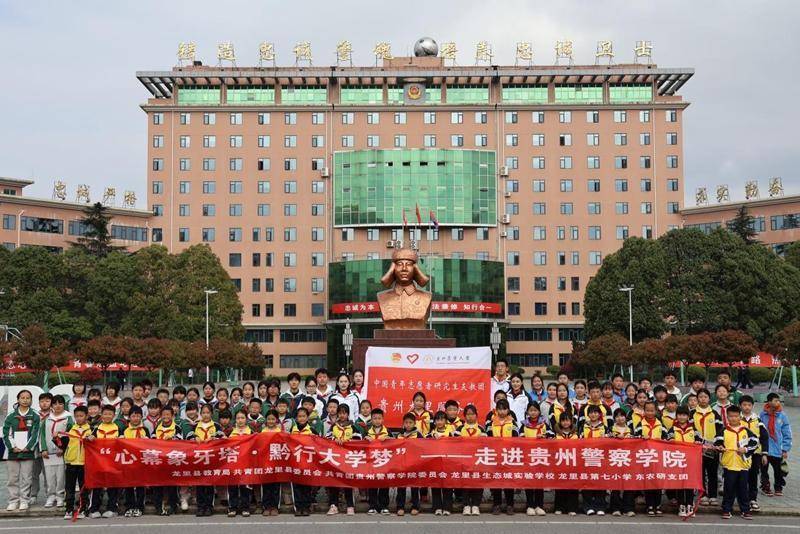 为深入推进大中小学思想政治教育一体化建设,拓宽青少年视野、厚植爱国情怀、点亮青春梦想,3月18日,东北农业大学研究生支教团贵州龙里服务队联合共青团龙里县委,组织龙里县生态城实验学校、龙里县第七小学80名学生走进贵州警察学院,开展“心幕象牙塔・黔行大学梦”主题研学。活动以沉浸式“行走的思政课”为载体,同学们依次参观校史馆、瞻仰英烈墙、近距离体验警务装备、与警校学子交流互动,在庄严警营氛围中感受公安院校忠诚担当的精神底色,在心中播下忠诚、担当与奋斗的种子,进一步筑牢理想信念根基。